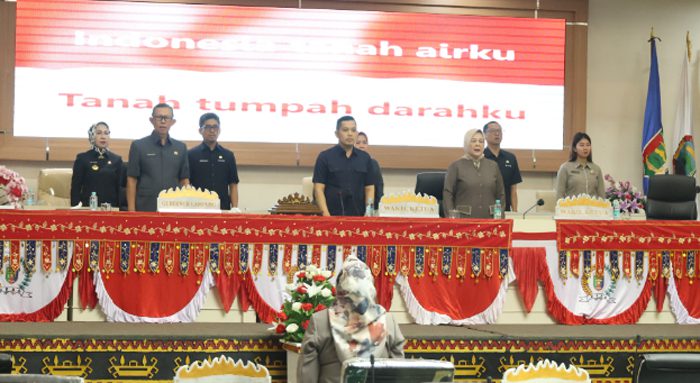 Pj Gubernur Lampung Samsudin yang diwakili oleh Sekretaris Daerah Provinsi Lampung, Fahrizal Darminto, mengikuti rapat paripurna Dewan Perwakilan Rakyat Daerah (DPRD) Provinsi Lampung, bertempat di ruang sidang paripurna DPRD Provinsi Lampung, Senin (19/8/2024).