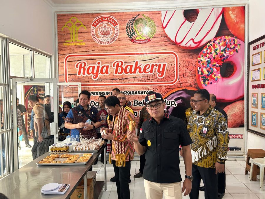 Selanjutnya, Pria Wibawa tertarik untuk meninjau area Pembinaan Kemandirian Kegiatan Kerja Lapas Kelas I Bandar Lampung untuk melihat proses pembuatan Roti Raja Bakery yang merupakan produk unggulan Lapas Kelas I Bandar Lampung.