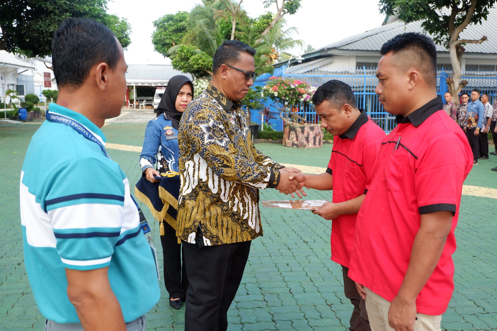 Apel Pagi dan Penutupan Pelatihan Teknik Pendinginan AC Split Bersertifikat bagi warga binaan. Pelatihan yang sudah berlangsung selama enam hari ini secara resmi ditutup oleh Kepala Lapas Kelas I Bandar Lampung, Saiful Sahri saat apel pagi petugas yang turut diikuti oleh seluruh peserta pelatihan, Sabtu (14/09).