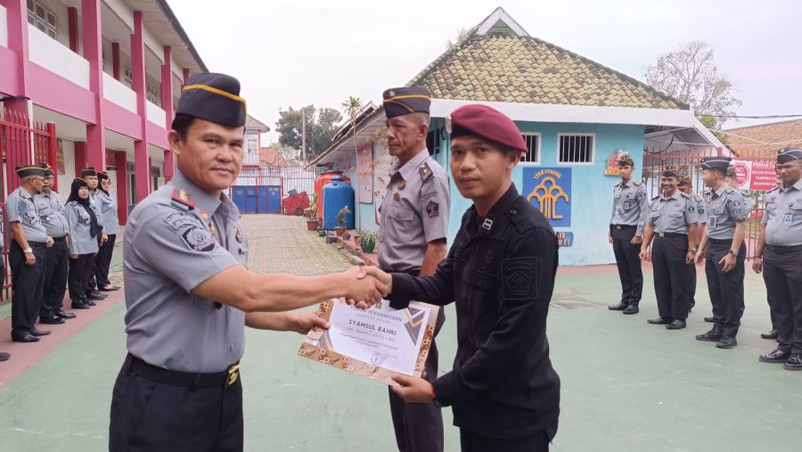 Dalam kesempatan yang sama, Badarudin juga memberikan piagam penghargaan pegawai teladan periode September kepada dua orang pegawai Lapas Tanjung Raja atas nama Subarman dan Syamsul Bahri.