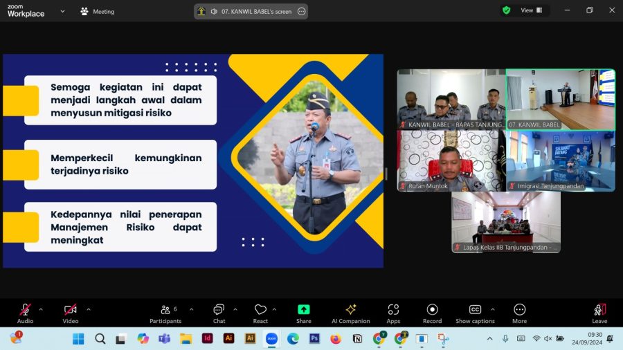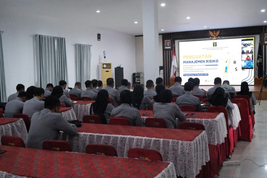 Kantor Wilayah Kementerian Hukum dan HAM Kepulauan Bangka Belitung menggelar Penguatan Manajemen Risiko bagi jajaran operator Kantor Wilayah dan Unit Pelaksana Teknis, di Balai Pengayoman Kantor Wilayah, Selasa (24/09/2024).