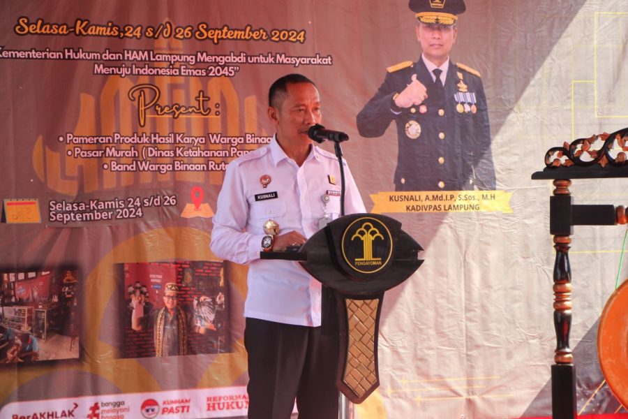 Kemenkumham Lampung Mengabdi Untuk Masyarakat Menuju Indonesia Emas 2045, Kantor Wilayah Kementerian Hukum dan HAM Lampung menggelar Pameran Produk Unggulan Hasil Karya Warga Binaan di Griya Abhipraya yang berlangsung selama dua hari, dari 25 hingga 26 September 2024, Rabu (25/09/2024).