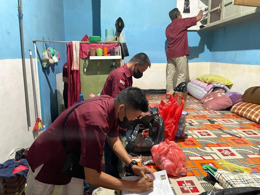 “Periksa seluruh sudut kamar, mulai dari kamar mandi, loker, ventilasi dan kolong tempat tidur. Jangan sampai ada bagian yang terlewatkan. Namun tetap laksanakan penggeledahan secara humanis, libatkan peran kepala kamar untuk menghindari hal-hal yang tidak diinginkan,” tegas Kunrat dalam arahannya.