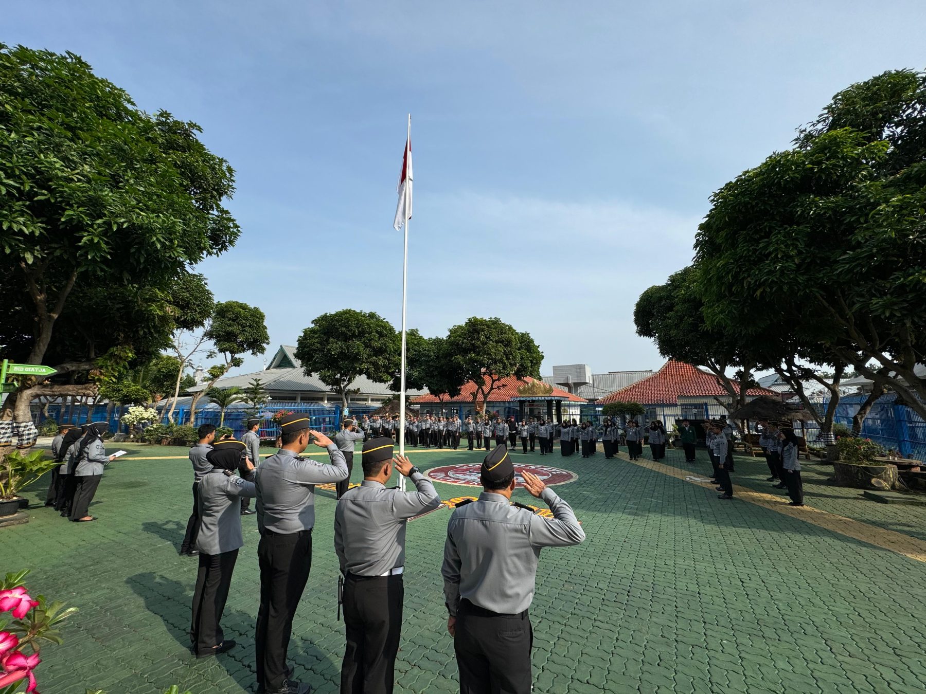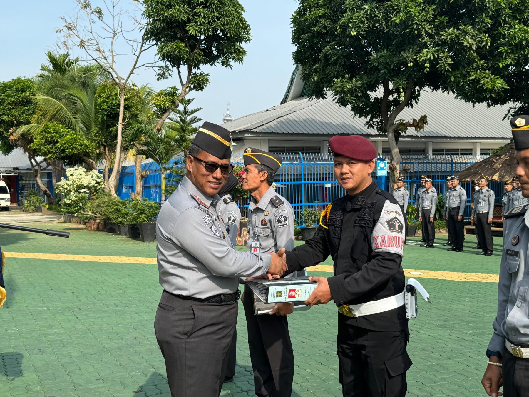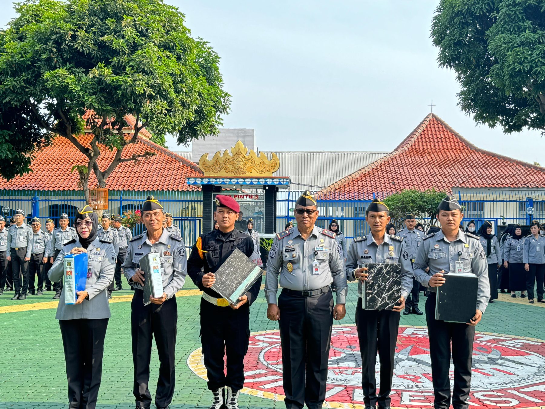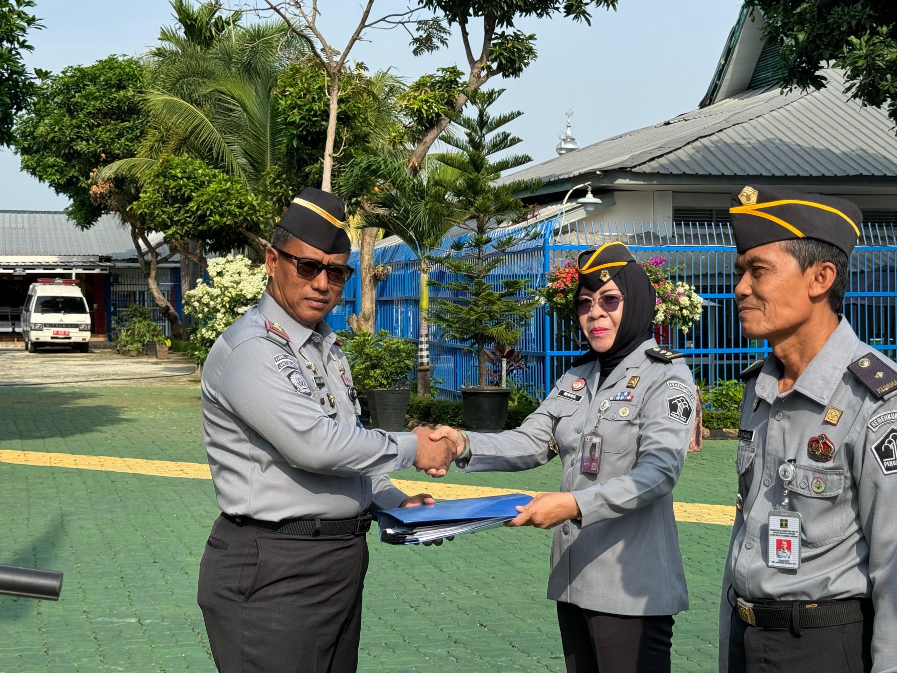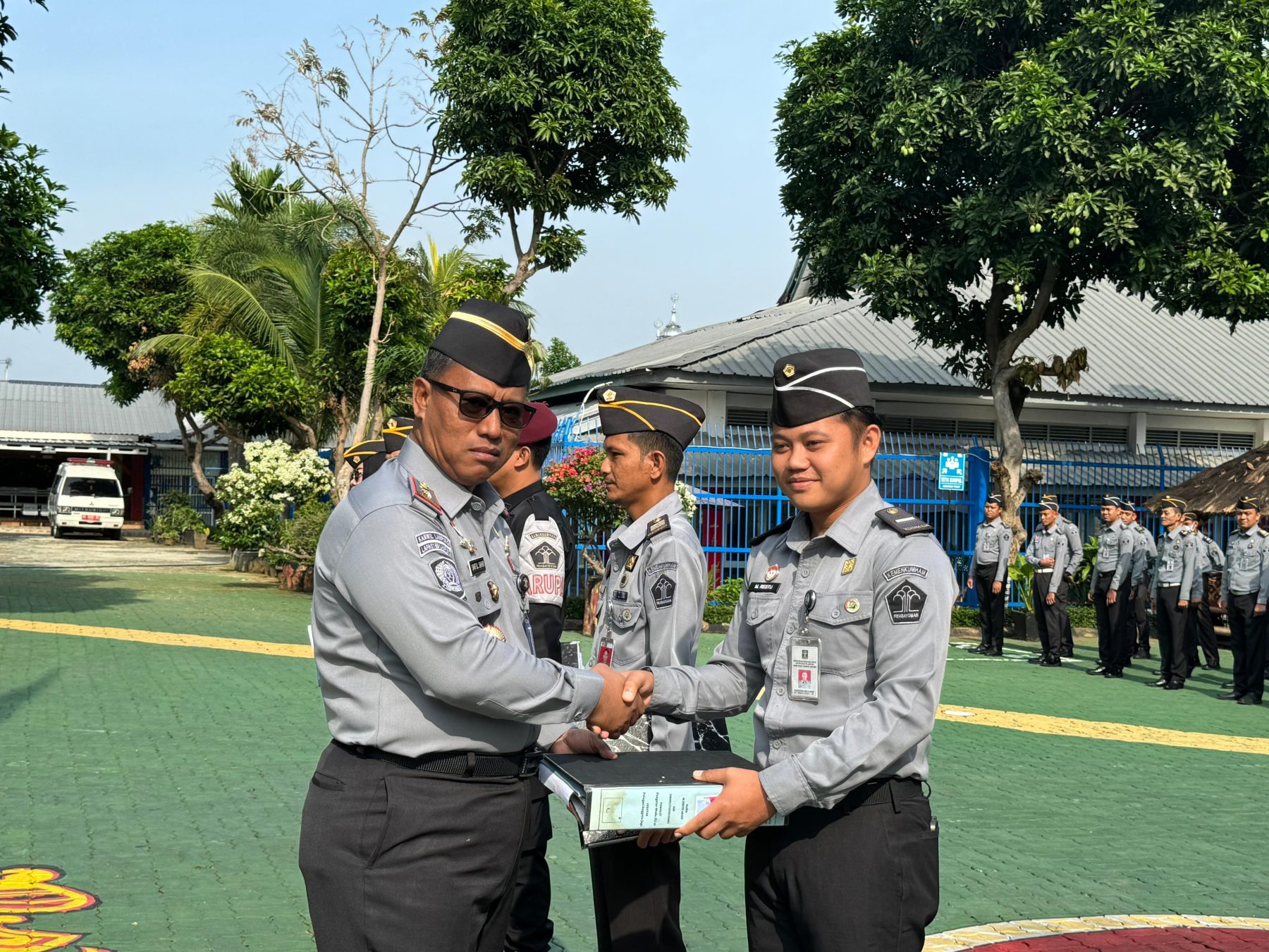 Saat Apel Pagi setelah penyematan tanda kenaikan pangkat petugas, Kalapas Saiful Sahri secara simbolis kembalikan Berkas Dossier Arsip Petugas, Rabu (02/10).