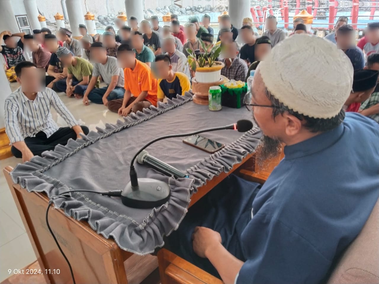 Rutan Kelas IIB Kotabumi mengadakan kegiatan pengajian tausyiah agama bagi Warga Binaan Pemasyarakatan (WBP). Acara yang diadakan di Masjid Nur Hidayah ini dimulai pukul 11:00 hingga menjelang waktu Zuhur. Pengajian kali ini menghadirkan pemateri ustadz H. Farouk Fakhruddin, S.Pd.I, yang mengangkat tema “Kandungan Surat Al ‘Ashr”.