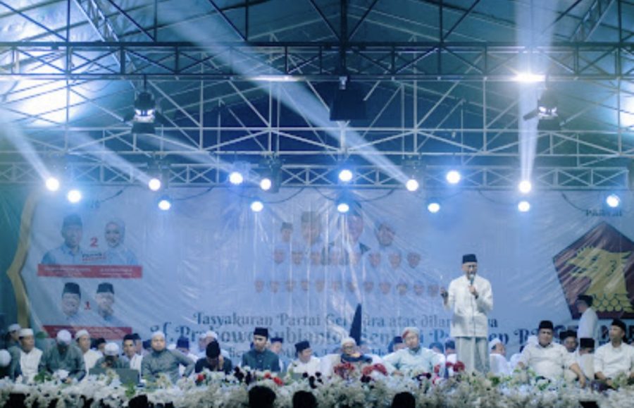 Partai Gerindra menggelar acara Tasyakuran atas dilantiknya H. Prabowo Subianto sebagai Presiden Republik Indonesia. Acara yang berlangsung di Seputih Agung, Lampung Tengah, Selasa malam (22/10/2024) ini dimeriahkan oleh Majelis Sholawatan Syubbanul Muslimin yang dipandu oleh Gus Hafidz dan Gus Azmi. Kegiatan ini menjadi momen kebahagiaan dan rasa syukur bagi masyarakat, khususnya para pendukung Prabowo di Lampung.
