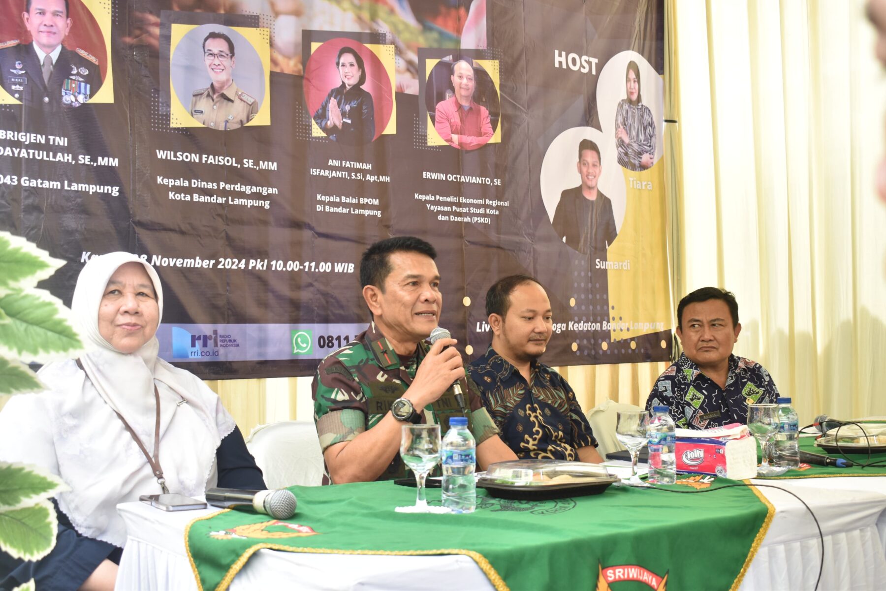 Komandan Korem 043/Gatam Brigjen TNI Rikas Hidayatullah, S.E., M.M., mengikuti Dialog Interaktif Luar Studio Radio Pasar Pro 1 RRI Bandar Lampung, bertempat di Pasar Koga Jl. Teuku Umar Kedaton, pada dengan tema “Keamanan dan Kenyamanan Mengapa Produk Lokal Layak Dipertimbangkan”, Kamis (28/11)