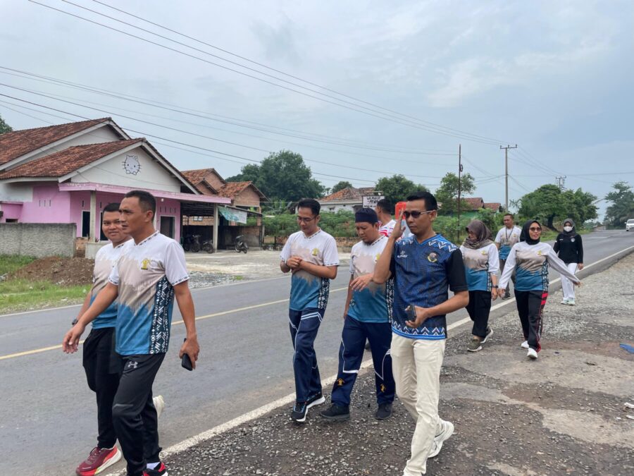 Kepala Rutan Kelas IIB Menggala, Dwi Ediyanto melaksanakan jalan sehat bersama para pejabat struktural beserta jajaran staf pada, Sabtu (07/11)