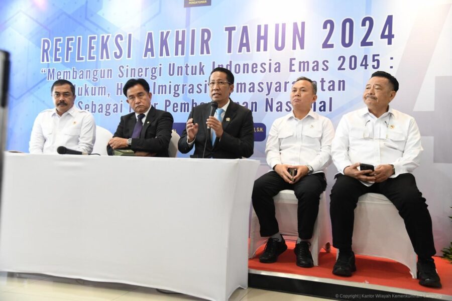 Mengusung tema, Membangun Sinergi untuk Indonesia Emas 2045: Hukum, HAM, Imigrasi, Pemasyarakatan sebagai Pilar Pembangunan Nasional, pada momen refleksi akhir tahun 2024 ini, diberikan penghargaan kepada sejumlah kementerian, lembaga, pemerintah daerah, Kantor Wilayah serta Unit Pelaksana Teknis (UPT) yang mendukung pembangunan hukum dan memberikan pelayanan publik prima.