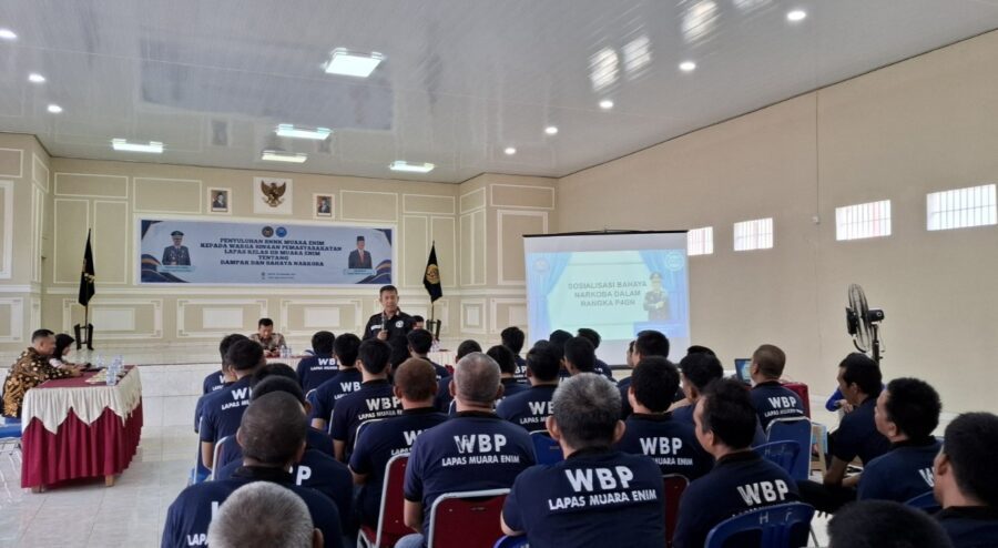 Lapas Muara Enim menggelar Penyuluhan dampak dan bahaya Narkoba bagi Warga Binaan bertempat di Aula Lapas Muara Enim. Dalam penyuluhan ini Lapas Muara Enim menggadeng BNNK Muara Enim dalam kegiatan ini dihadiri oleh Kalapas Muara Enim Mukhlisin Fardi, Kepala Badan Narkotika Nasional Kota (BNNK) Muara Enim, AKBP. Erlangga serta Kasi Binadik Giatja Julianto Silalahi, Kasi Minkamtib Teguh Agung, Kasubsi Perawatan Anton Sandrayadi, Kasubsi Portatib Akbar Guntara dan para warga binaan, Jumat 20/12/2024.