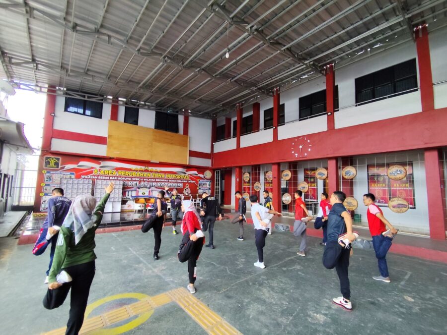 Kepala Rutan Kelas IIB Kotabumi, Budi Setyo Prabowo pimpin kegiatan olahraga pagi rutin yang diikuti oleh seluruh pegawai lapangan Rutan Kotabumi pada, Jumat (27/12).