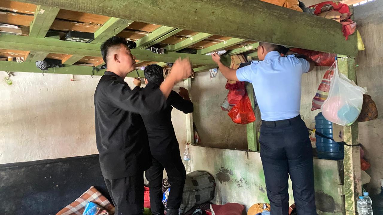 Karutan Kelas IIB Krui, Fajar Ferdinan melalui Kepala Kesatuan Pengamanan Rutan Krui, Jonli Oswan, memberikan arahan kepada warga binaan terkait hal kebersihan dan kerapihan kamar hunian pada, Kamis (02/01/2025)