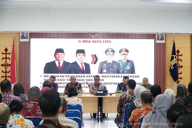 Seluruh jajaran harus siap menghadapi tantangan baru, pemisahan kementerian dengan integritas dan loyalitas, hal ini disampaikan oleh Kepala Kantor Wilayah (Kakanwil) Kementerian Hukum (Kemenkum) Maluku Saiful Sahri saat pemberian arahan tugas dan fungsi Kanwil Hukum kepada 82 pegawai yang digelar di Aula Lantai 4 Kantor Wilayah, Jumat (3/1/2025)