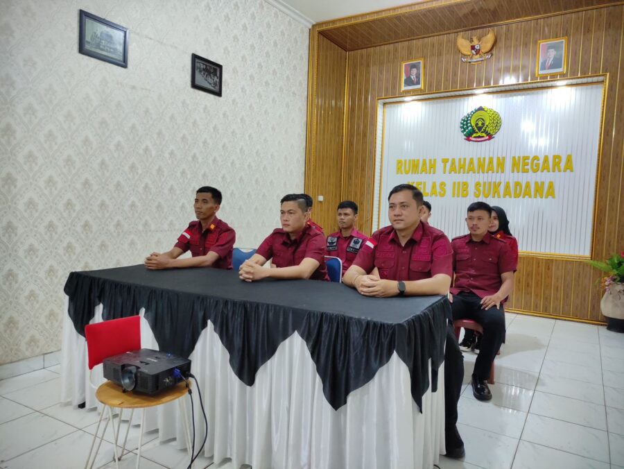 Kepala Rutan Kelas IIB Sukadana, Farizal Antony bersama Jajaran Pejabat Struktural dan staf Rutan Kelas IIB Sukadana mengikuti kegiatan Pelantikan Pimpinan Tinggi Madya di Kementerian Imigrasi dan Pemasyarakatan di Aula Rutan pada Kamis (09/01/2025) secara virtual.