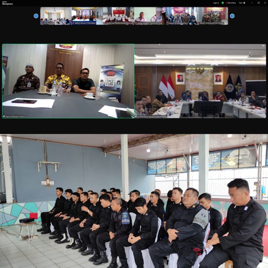 Kepala Rutan Kelas IIB Sukadana, Farizal Antony bersama jajaran mengikuti kegiatan pengarahan perdana dari Direktur Jenderal Pemasyarakatan, Drs. Mashudi secara virtual. Jum’at (10/01/2025) bertempat di Aula Rutan.