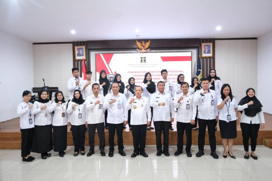 Canangkan Pembangunan Zona Integritas menuju Wilayah Birokrasi Bersih dan Melayani (WBBM), Kantor Wilayah Kementerian Hukum Kepulauan Bangka Belitung (Kanwil Kemenkum Babel) tandatangani Komitmen Bersama, Pakta Integritas dan Perjanjian Kinerja tahun 2025, di Balai Pengayoman Kantor Wilayah, Rabu (15/01/2025).