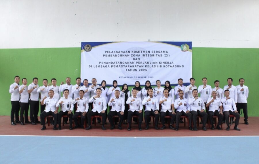 Pembangunan Zona Integritas (ZI) dan penetapan target kinerja melalui penandatanganan perjanjian, komitmen bersama, dan pakta integritas menjadi agenda awal tahun 2025 yang digelar seluruh jajaran Lembaga Pemasyarakatan (Lapas) Kelas IIB Kotaagung pada Rabu (22/1/2025).