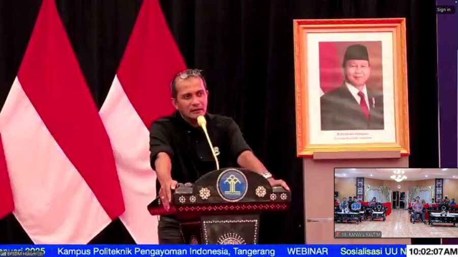 Kegiatan ini menghadirkan narasumber utama Wakil Menteri Hukum Prof. Dr. Edward Omar Sharif Hiariej, S.H., M.Hum. Webinar yang berlangsung hari ini diikuti oleh para pimpinan tinggi Kanwil Kemenkum Kaltim beserta seluruh jajarannya. Turut hadir pula perwakilan dari instansi pemerintah, akademisi, aparat penegak hukum, anggota Perhimpunan Advokat Indonesia (Peradi), serta masyarakat umum.