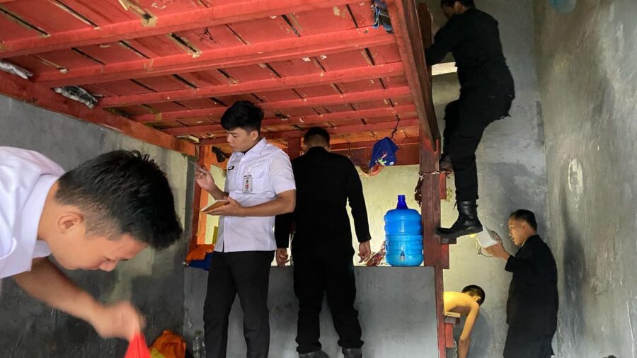 Karutan Kelas IIB Krui, Fajar Ferdinan melalui Kepala Kesatuan Pengamanan Rutan Krui, Jonli Oswan pimpin penggeledahan kamar hunian warga binaan pada, Rabu (05/02/2025)