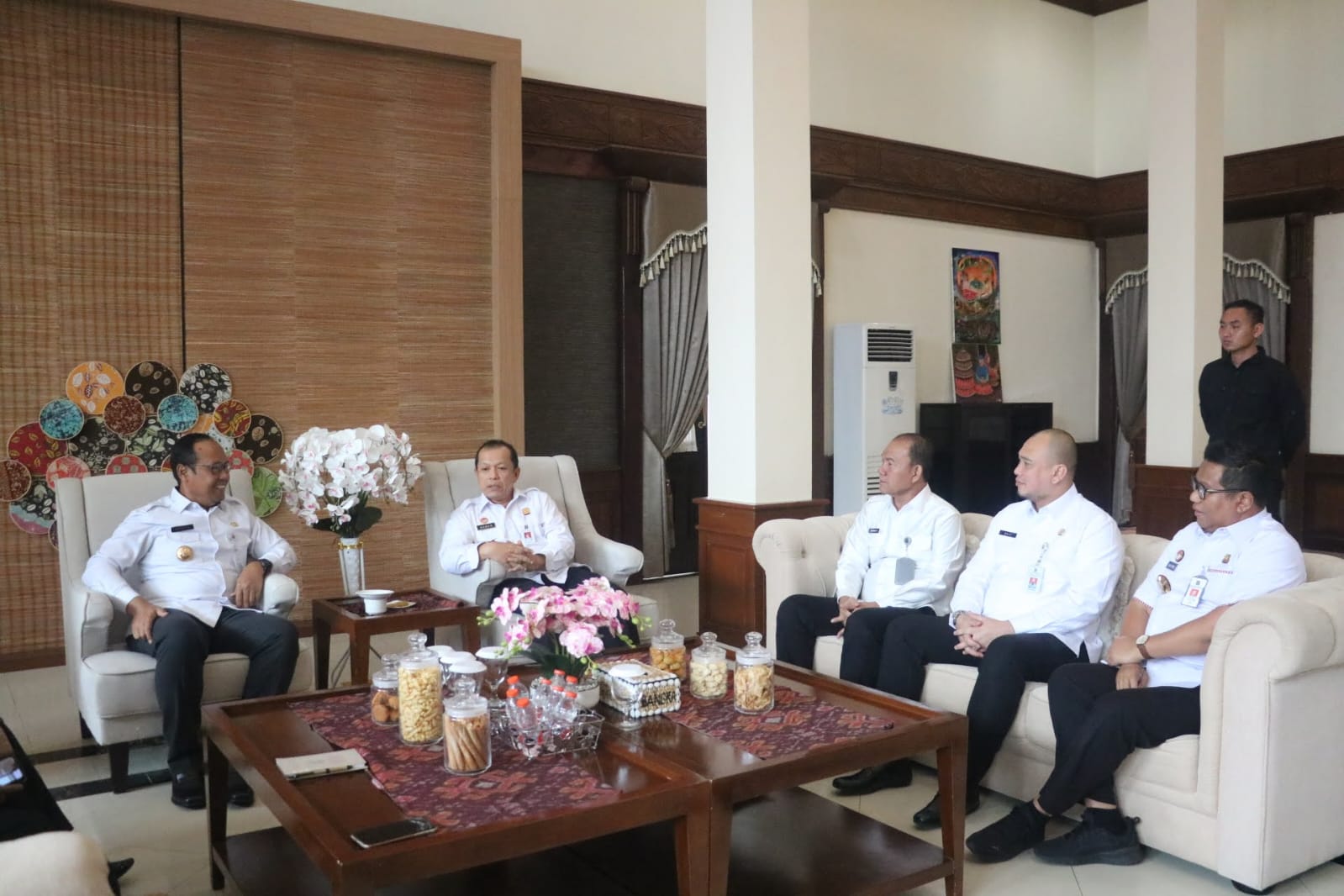 Kakanwil Kemenkum Babel Harun Sulianto berasama Kepala Kantor Wilayah Direktorat Jenderal Imigrasi Babel, Qriz Pratama, Kepala Kantor Wilayah Direktorat Jenderal Pemasyarakatan Babel, Herman Sawiran) audiensi dengan Pj. Gubernur Provinsi Kepulauan Bangka Belitung Sugito bertempat di Rumah Dinas Gubernur, Rabu (12/02).