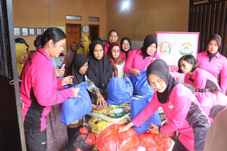 Polresta Bandar Lampung dan Bhayangkari Cabang Kota Bandar Lampung membagikan ratusan paket bantuan sosial bagi warga korban banjir.