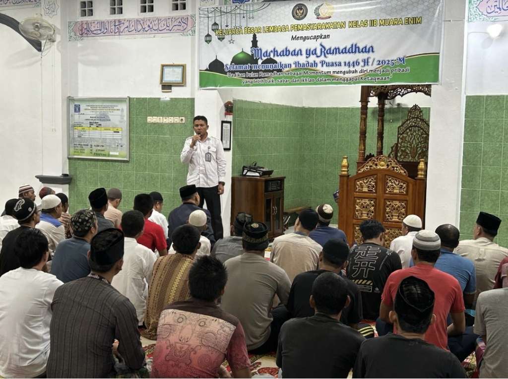 Ditengah tengah Shalat Terawih Kabid Pelayanaan dan Pembinaan menyampaikan ceramah singkat kepada Warga Binaan Lapas Muara Enim. Beliau mengajak para warga binaan untuk senantiasa meningkatkan keimanan dan ketakwaan, serta memanfaatkan waktu selama Ramadan untuk memperbaiki diri.