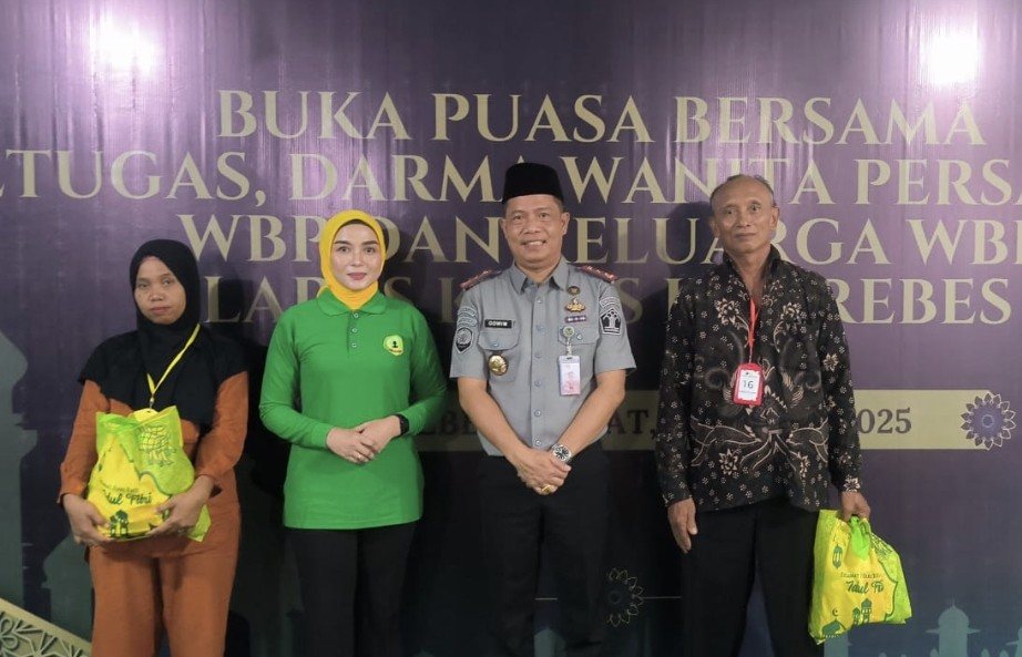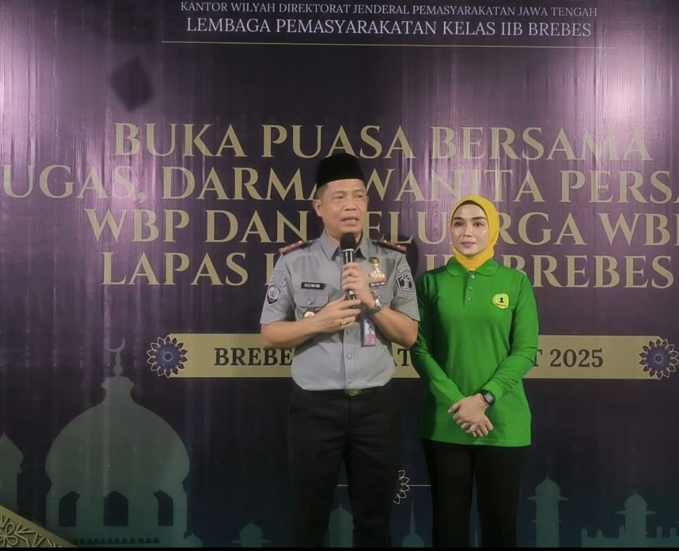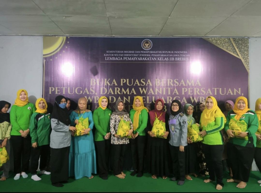 Lembaga Pemasyarakatan (Lapas) Kelas IIB Brebes menggelar kegiatan bakti sosial dan buka puasa bersama Petugas, PIPAS (Paguyuban Ibu-Ibu Pemasyarakatan) Lapas Brebes, Warga Binaan Pemasyarakatan (WBP) dan Keluarga WBP di aula blok hunian. Acara ini diselenggarakan dalam rangka Hari Bhakti Pemasyarakatan Ke-61 Tahun 2025 dan pelayanan terbaik kepada masyarakat, Jumat Sore (21/03).