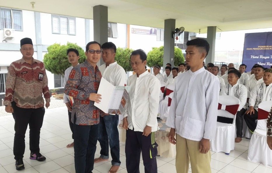 Kepala Lapas Kelas IIA Banyuasin Tetra Destorie mengucapkan selamat kepada warga binaan yang menerima remisi khusus Hari Raya Idul Fitri ini. Semua yang menerima remisi telah memenuhi syarat baik administratif maupun substantif.
