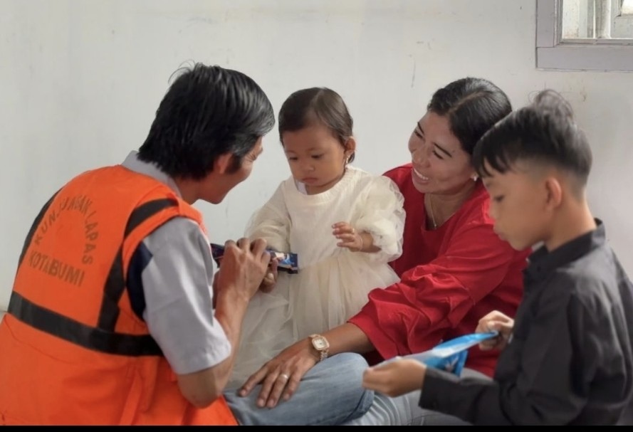 Hari kedua kunjungan tatap muka dalam rangka perayaan Idul Fitri 1446 H di Lembaga Pemasyarakatan (Lapas) Kelas IIA Kotabumi semakin ramai dipadati oleh keluarga warga binaan pemasyarakatan (WBP). Suasana haru dan kebahagiaan masih terasa di antara pengunjung yang datang dengan penuh antusias untuk bersilaturahmi dengan sanak keluarga mereka.