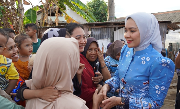 Ketua TP. PKK Provinsi Lampung, Purnama Wulan Sari Mirza kembali meninjau langsung lokasi banjir di Kecamatan Panjang, Kamis (24/04/ 2025).
