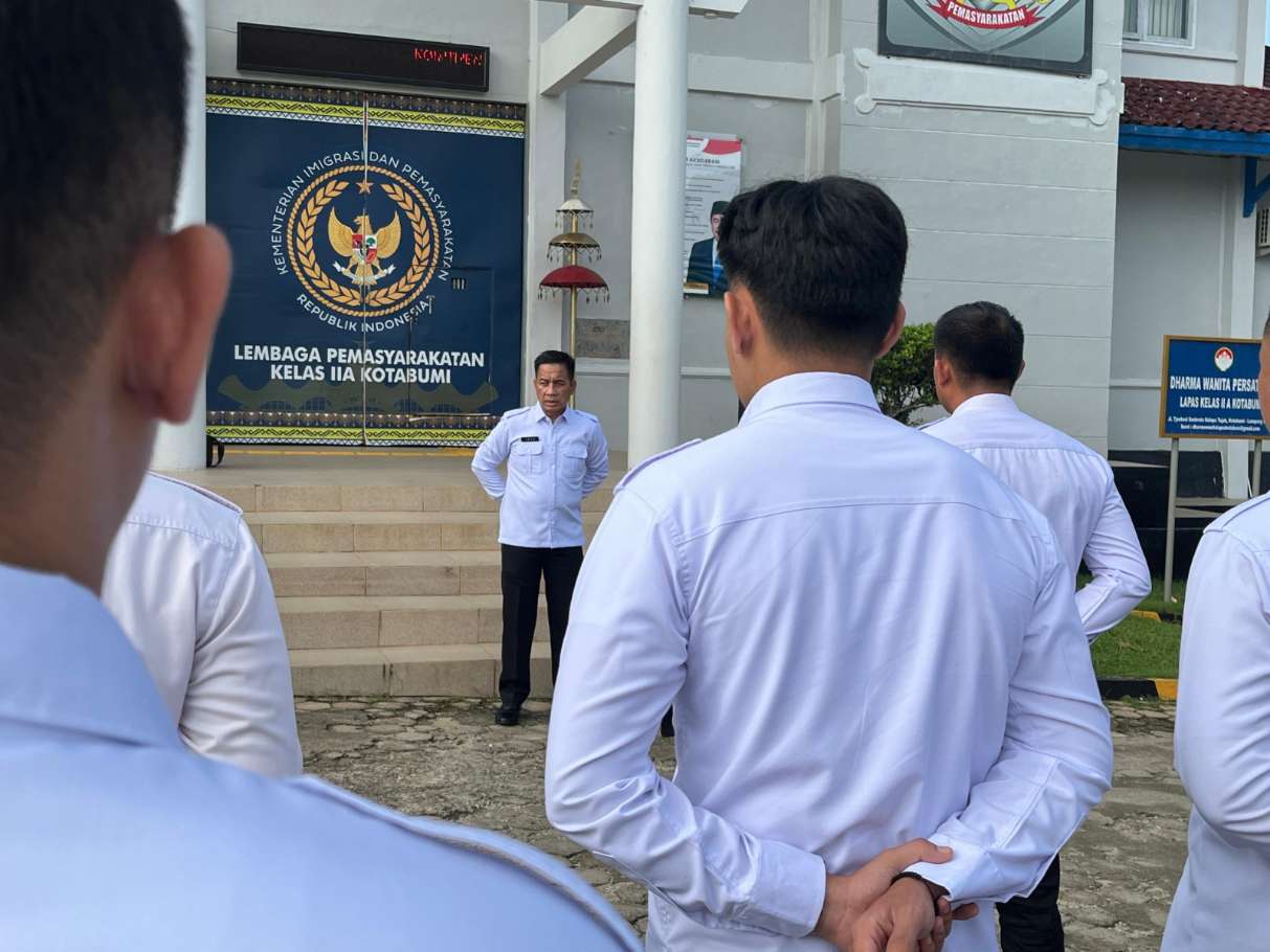 Kepala Lembaga Pemasyarakatan (Kalapas) Kelas IIA Kotabumi, Sudirman Jaya, memimpin apel pagi pegawai senin 28 april 2025. Apel di ikuti dengan semangat oleh seluruh pegawai Lapas Kotabumi. Dalam amanatnya, Kalapas menyampaikan pesan untuk meningkatkan kinerja kepada seluruh pegawai untuk tahun 2025.