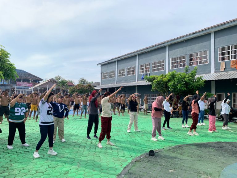 Dipimpin oleh instruktur senam yang merupakan warga binaan wanita Rutan Sukadana, seluruh warga binaan dan petugas mengikuti setiap gerakan dengan penuh semangat dan antusias. Senam bersama ini tidak hanya bertujuan untuk menjaga kesehatan fisik, tetapi juga sebagai sarana relaksasi serta membangun kebersamaan antara petugas dan warga binaan.