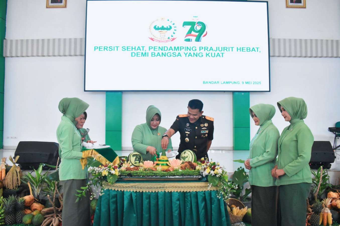 Komandan Korem 043/Gatam, Brigjen TNI Rikas Hidayatullah, S.E., M.M., selaku Pembina Persit Kartika Chandra Kirana (KCK) Koorcab Rem 043 PD II/Sriwijaya, pada hari Jum’at tanggal 09/05/2025 menghadiri acara syukuran dalam rangka HUT Ke-79 Persit KCK Tahun 2025, Acara tersebut berlangsung di Aula Sudirman Makorem 043/Gatam, Jl. Teuku Umar Penenganan Bandar Lampung.