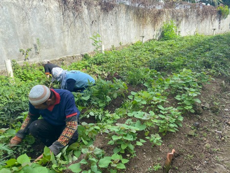 Dalam rangka mendukung program ketahanan pangan di Indonesia, warga binaan Lembaga Pemasyarakatan (Lapas) Kelas IIA Kalianda memanfaatkan lahan terbatas untuk menanam berbagai tanaman sayuran, termasuk mantang dan kangkung, Selasa (20/5).