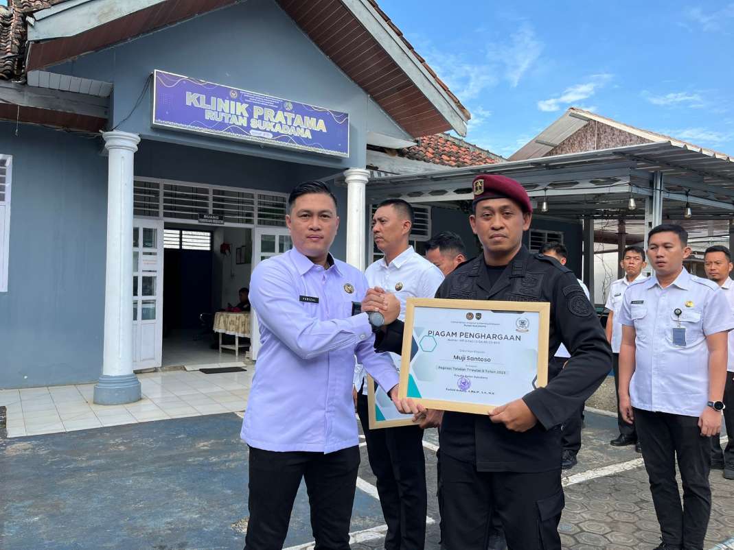 Penghargaan tersebut diberikan kepada Muji Santoso Petugas Regu Pengamanan dan Redi Restu Mulyadi Petugas Staf KPR. Selama ini, kedua pegawai tersebut dikenal tekun dan profesional dalam melaksanakan tugas sehari-hari serta memberikan pelayanan yang sigap kepada sesama rekan kerja di lingkungan Rutan Sukadana.