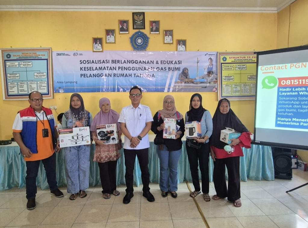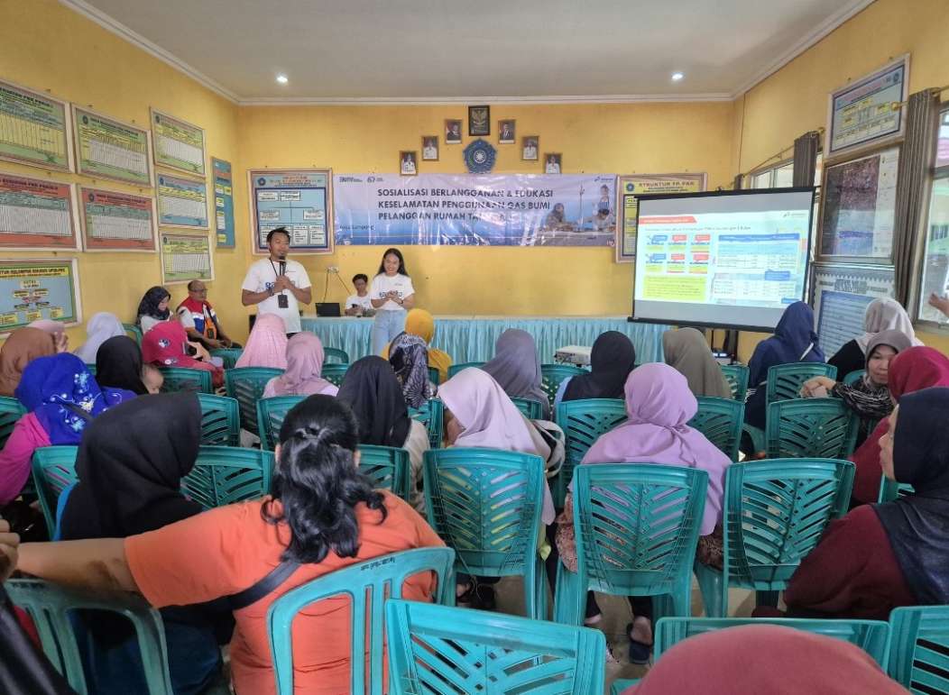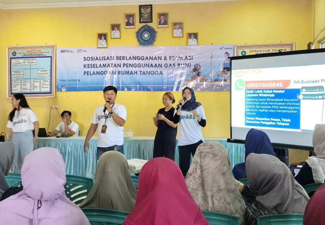 PT Pertamina Gas Negara (PGN) Area Lampung gelar sosialisasi berlangganan dan edukasi keselamatan penggunaan gas bumi pelanggan rumah tangga yang diikuti sekitar 50 pelanggan jaringan gas rumah tangga yang digelar di kantor Kelurahan Korpri Raya Jl. Lampung Jaya No.5A Blok D9, Korpri Raya, Kecamatan Sukarame, Bandar Lampung, Rabu (16/07)
