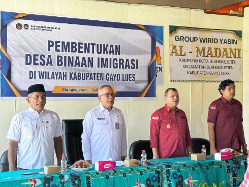 Kepala Kantor Wilayah Direktorat Jenderal Imigrasi Aceh, Tato Juliadin Hidayawan melaksanakan Pengukuhan Desa Binaan Imigrasi pada Kampung Kota Blangkejeren, Kabupaten Gayo Lues yang diselenggarakan oleh Kantor Imigrasi Kelas III Non TPI Takengon, Rabu (16/07)