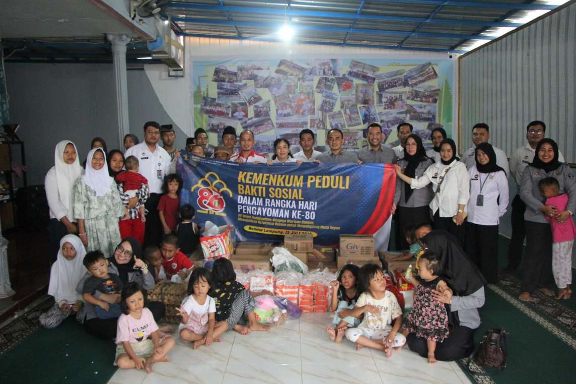 Dalam memperingati Hari Pengayoman ke-80 Tahun 2025, Kantor Wilayah Kementerian Hukum Lampung menggelar kegiatan bakti sosial “Kemenkum Peduli” dengan mengunjungi Panti Asuhan Yayasan Bussaina Lampung. Selasa (22/7/2025).