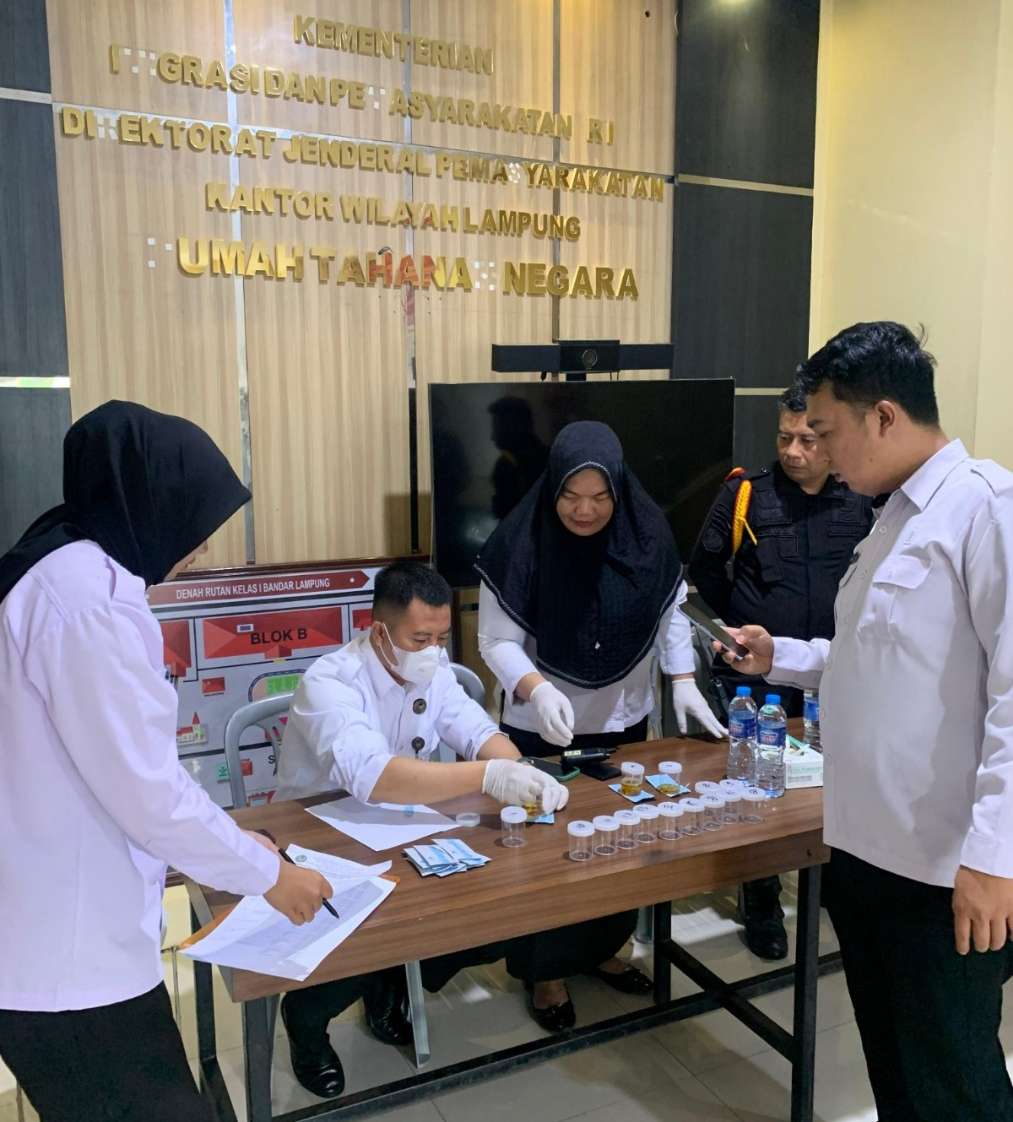 Bebas Narkoba, Rutan Kelas I Bandar Lampung Tingkatkan Pengawasan Internal Dengan Lakukan Tes Urine Dadakan