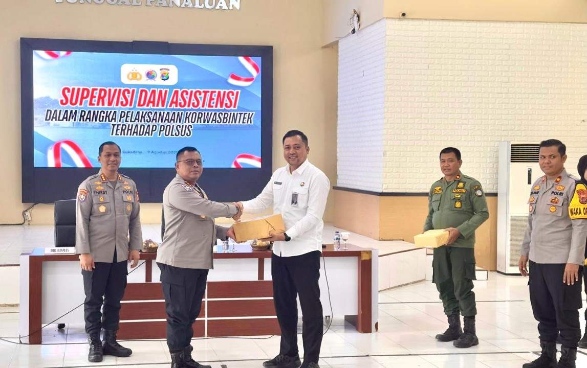 Kepala Rutan Kelas IIB Sukadana, Farizal Antony yang diwakili Plh Kepala KPR, Mario Fillie bersama jajaran pengamanan mengikuti kegiatan supervisi dan asistensi Kepolisian Khusus yang diselenggarakan di Kepolisian Resor (Polres) Lampung Timur, Kamis (07/08/2025).