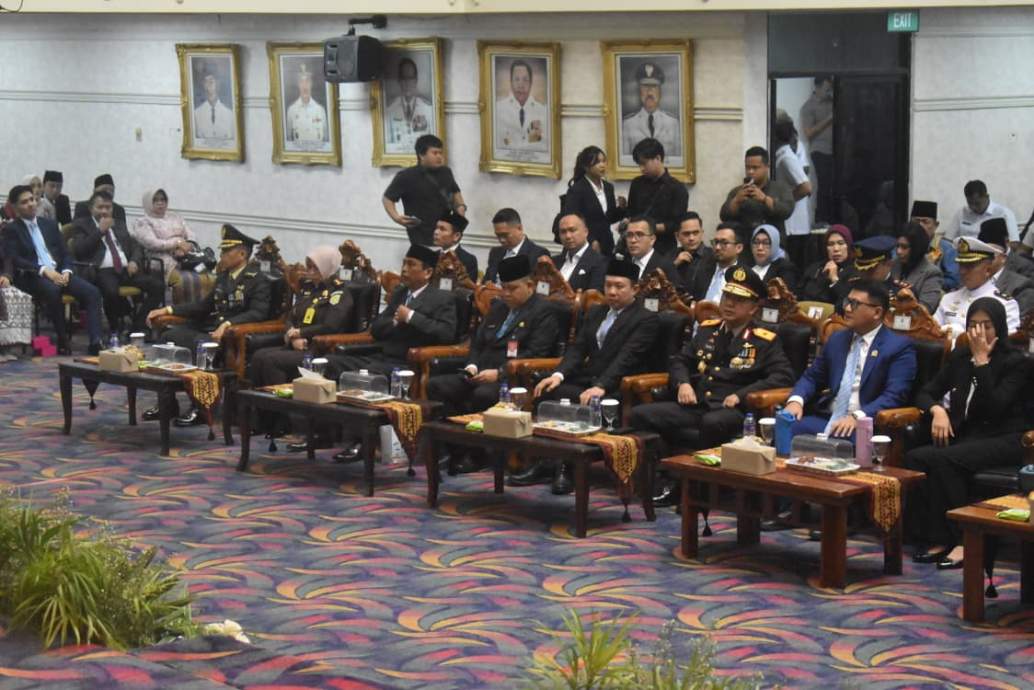 Kepala Staf Korem 043/Gatam Kolonel Inf Sumarlin Marzuki, S.E., M.Han., menghadiri pelantikan serta pengambilan sumpah jabatan Bupati dan Wakil Bupati Pesawaran periode 2025–2030, Hj. Nanda Indira B., S.E., M.M., dan Antonius Muhammad Ali, S.H., bertempat di Balai Keratun Lt. 3, Komplek Kantor Gubernur Lampung, Rabu (27/08/2025).
