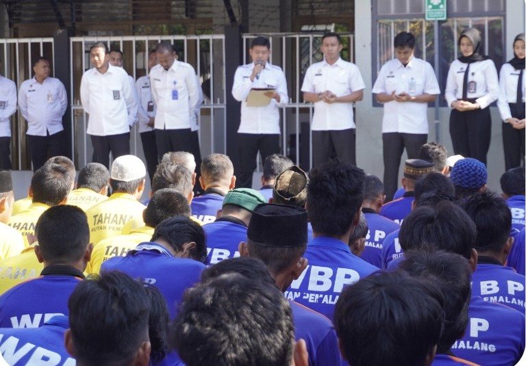 Rumah Tahanan Negara (Rutan) Kelas IIB Pemalang menggelar kegiatan doa bersama yang diikuti oleh seluruh petugas dan Warga Binaan Pemasyarakatan (WBP). Kegiatan yang dilaksanakan pada Senin pagi mulai pukul 08.00 WIB ini berlangsung khidmat di lingkungan Rutan Pemalang, dengan suasana penuh kebersamaan dan rasa syukur.