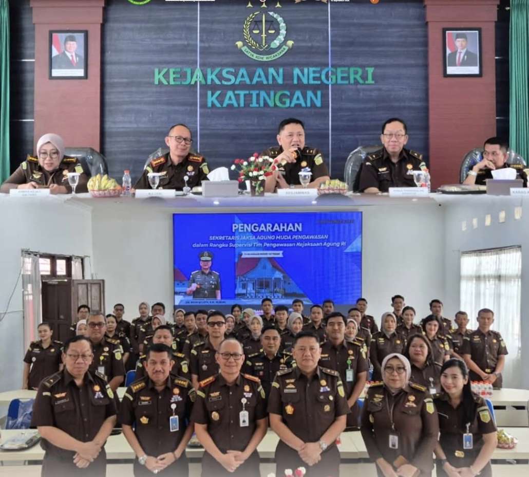Tim Pengawasan Kejaksaan Agung RI yang dipimpin oleh Sekretaris Jaksa Agung Muda Pengawasan, Dr. Iman Wijaya, S.H., M.Hum, melaksanakan Supervisi di wilayah hukum Kejaksaan Negeri Katingan. Kehadiran beliau disambut langsung oleh Kepala Kejaksaan Negeri Katingan, Subari Kurniawan, S.H., M.H., bersama jajaran Kepala Seksi. Kegiatan ini dilaksanakan guna mendukung pencapaian tugas dan fungsi Kejaksaan Republik Indonesia.