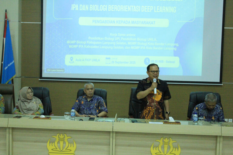 Bandar Lampung – Fakultas Keguruan dan Ilmu Pendidikan (FKIP) Universitas Lampung (Unila) bersama Fakultas Matematika dan Ilmu Pengetahuan Alam (FMIPA) Universitas Pendidikan Indonesia (UPI) menandatangani Perjanjian Kerja Sama (PKS) dan Implementation of Arrangement (IA) dengan Musyawarah Guru Mata Pelajaran (MGMP) Biologi dan IPA se-Lampung. Kegiatan ini berlangsung di Aula A FKIP Unila, Jumat, 26 September 2025.