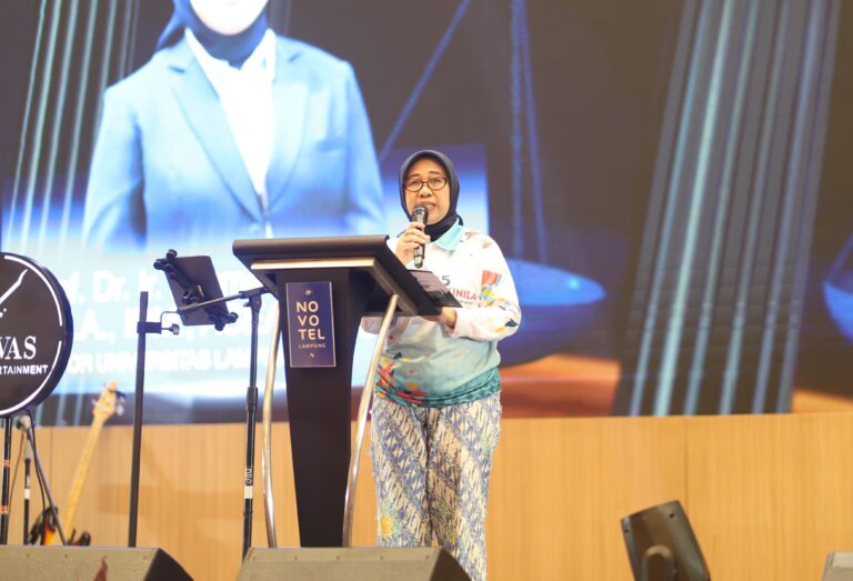 Bandar Lampung – Rektor Universitas Lampung (Unila) Prof. Dr. Ir. Lusmeilia Afriani, D.E.A, IPM., ASEAN Eng , menghadiri puncak rangkaian pelaksanaan Reuni Akbar Ikatan Alumni (IKA) Fakultas Hukum (FH) Unila tahun 2025, pada Sabtu, 27 September 2025, di Ballroom Hotel Novotel, Bandar Lampung.