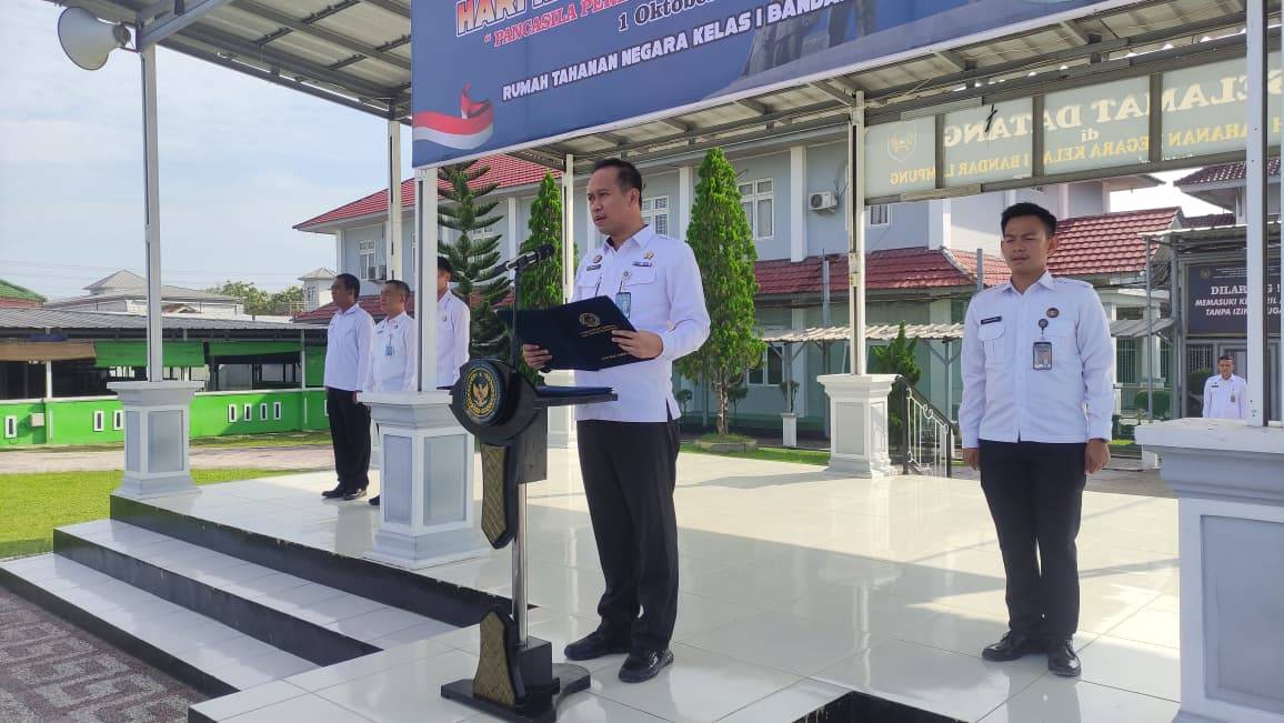 Bertindak sebagai Inspektur Upacara adalah Kepala Rutan Kelas I Bandar Lampung, Wahyu Tri Santosa. Dalam sambutannya, beliau menekankan pentingnya menjadikan Pancasila sebagai nilai dasar dalam kehidupan berbangsa dan bernegara, khususnya di tengah dinamika dan tantangan zaman saat ini.