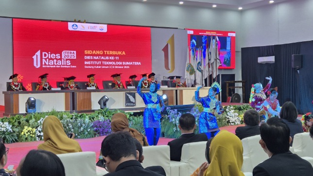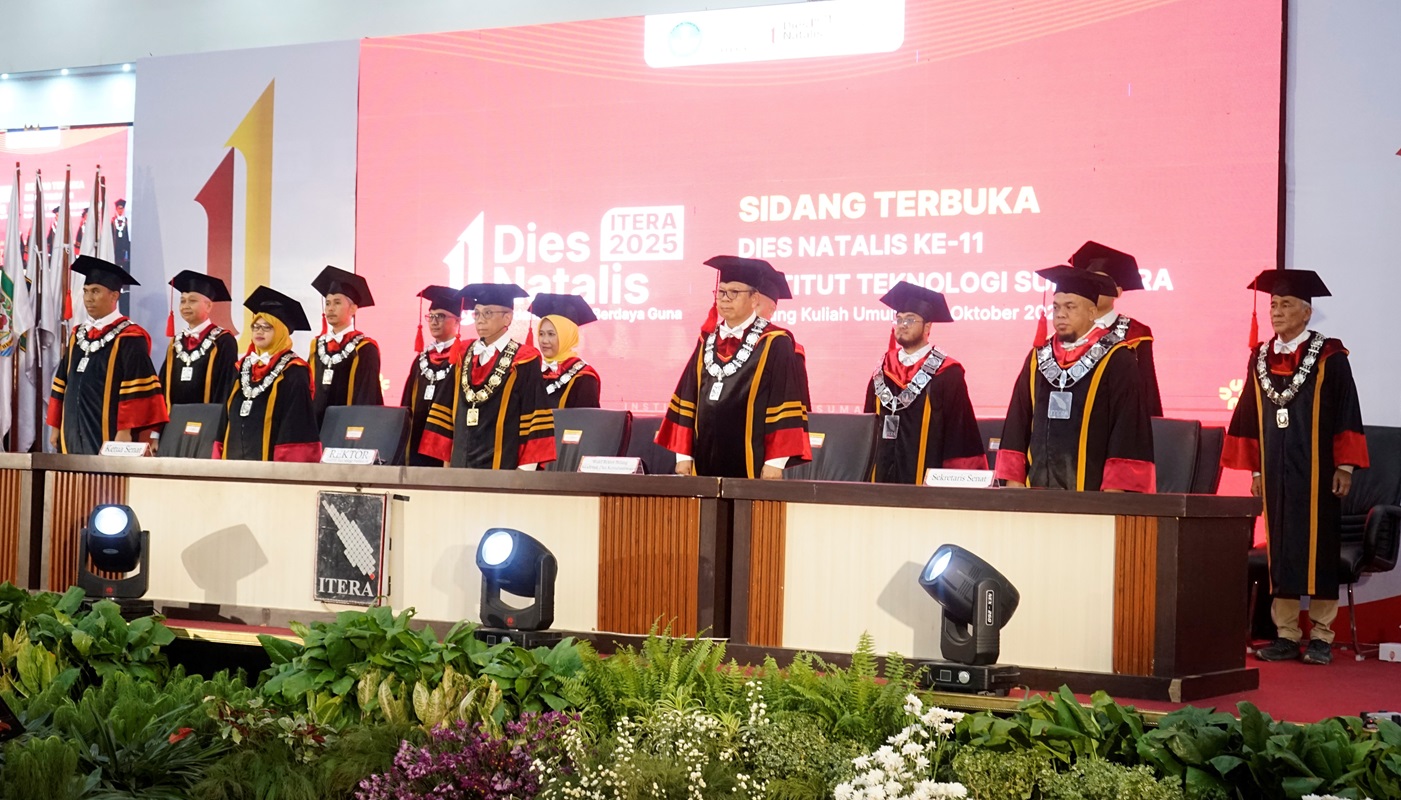 Institut Teknologi Sumatera menggelar Sidang Terbuka Dies Natalis ke-11, di Aula Gedung Kuliah Umum 2 Itera, Senin, 6 Oktober 2025. Dalam kesempatan tersebut, Rektor Itera Prof. Dr. I Nyoman Pugeg Aryantha, menyampaikan berbagai capaian Itera dalam upaya memberikan dampak bagi pembangunan Provinsi Lampung, Sumatera, dan Indonesia. Rektor juga menyerahkan penghargaan kepada para tokoh daerah dan nasional yang telah berjasa dalam perjalanan 11 tahun Itera.