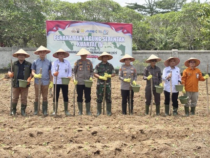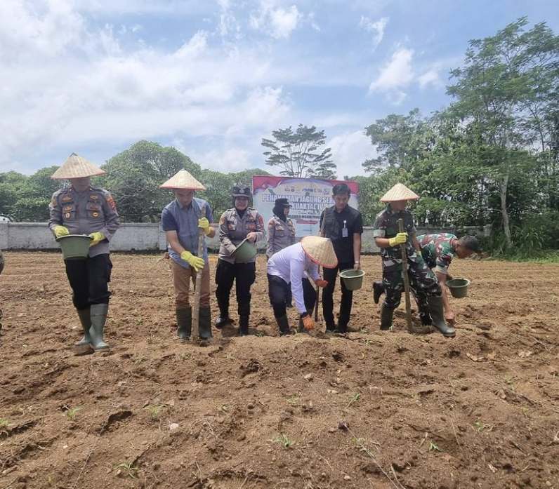 Kepala Rumah Tahanan Negara (Karutan) Kelas IIB Sukadana, Farizal Antony berserta jajaran Forum Komunikasi Pimpinan Daerah (Forkopimda) Kabupaten Lampung Timur, turut berpartisipasi dalam kegiatan Penanaman Jagung Serentak Kuartal IV Tahun 2025 yang dilaksanakan di Polsek Batanghari Nuban, Kabupaten Lampung Timur.