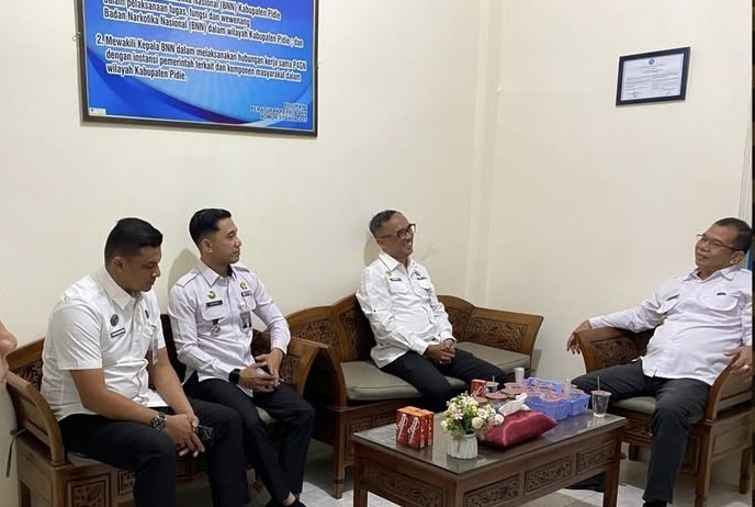 Kepala BNN Kabupaten Pidie, AKBP Fakrorrozi, S.H, beserta jajaran di kantor BNN setempat. Pertemuan berlangsung dalam suasana hangat dan penuh keakraban.