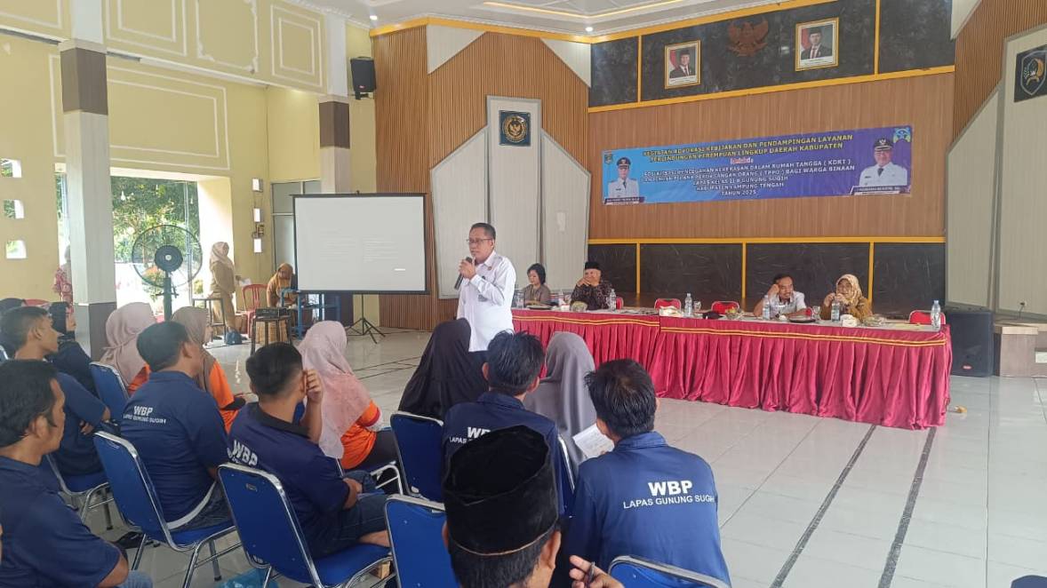Penuh dengan antusias puluhan Warga Binaan Lembaga Pemasyarakatan (Lapas) Kelas IIB Gunung Sugih mengikuti kegiatan Sosialisasi Pencegahan Kekerasan Dalam Rumah Tangga (KDRT) dan Tindak Pidana Perdagangan Orang (TPPO) dari Dinas Pemberdayaan Perempuan dan Perlindungan Anak (PPPA) Kabupaten Lampung Tengah di Aula pada, Selasa (14/10).